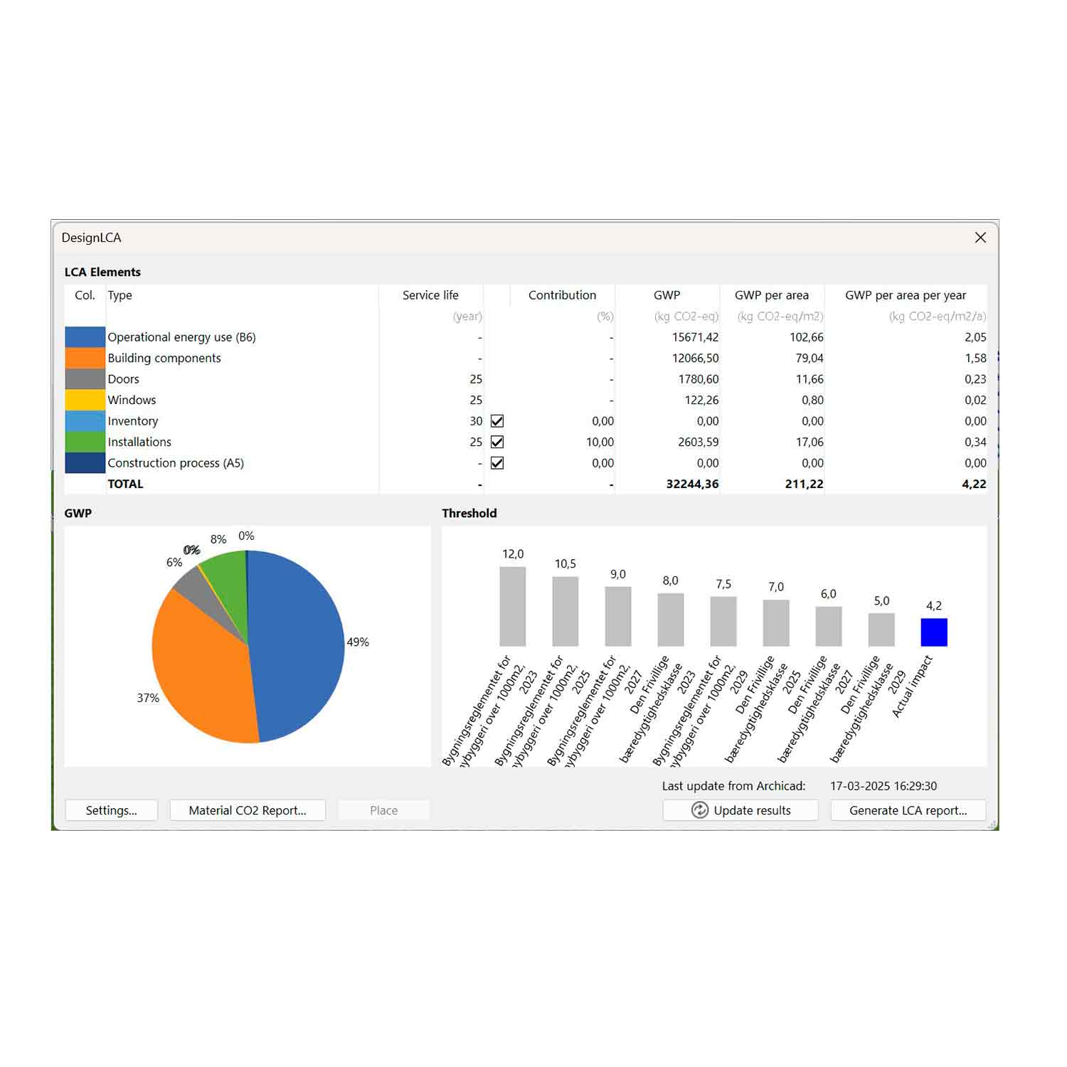 Selve byggeprocessen har en selvstændig grænseværdi, der i 2029 skal være under 1,1 kg CO2-eq/m2/år
